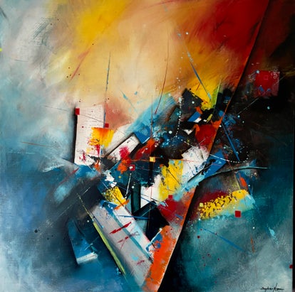 Ce tableau est un magnifique exemple de l'art abstrait contemporain. L'artiste a su maîtriser la technique de l'acrylique pour donner vie à une composition qui évoque une explosion de sentiments et d'énergie. La texture et le jeu des couleurs révèlent une profonde compréhension des contrastes et des harmonies, laissant transparaître une sensibilité artistique raffinée.